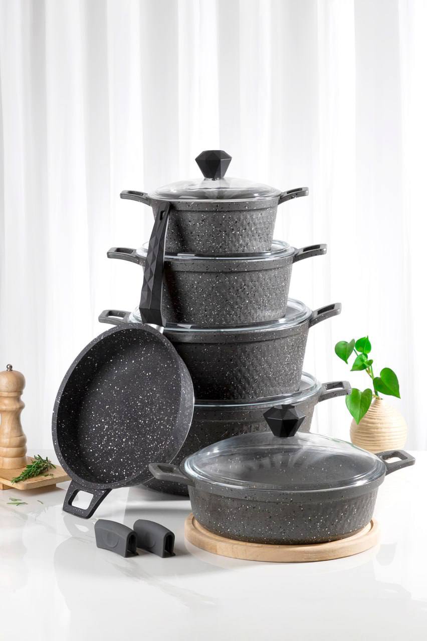 خانه لوازم غیر برقی ظروف پخت و پز سرویس قابلمه 11پارچه گرانیت لایولوکس
