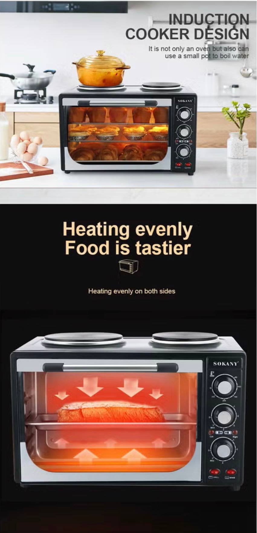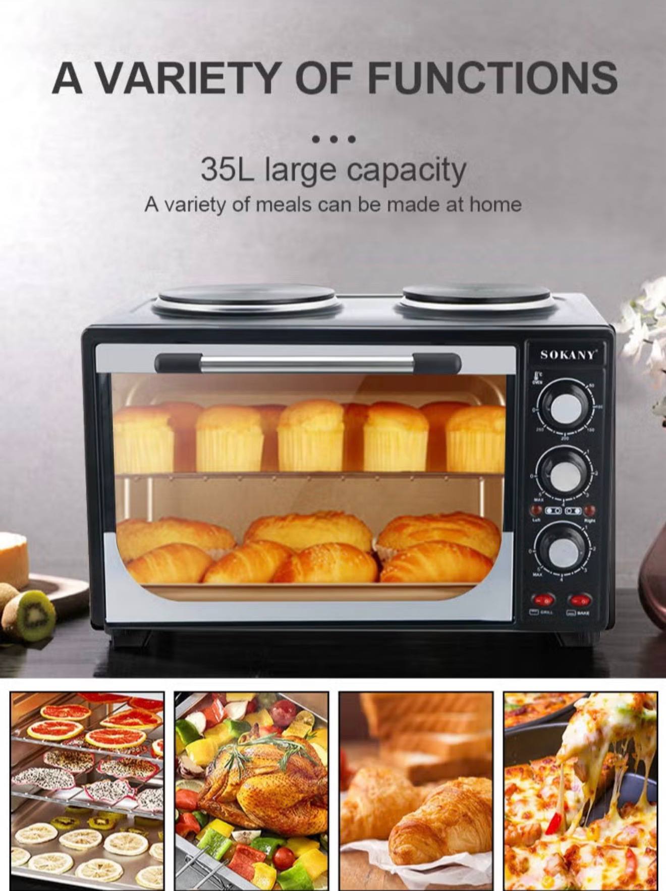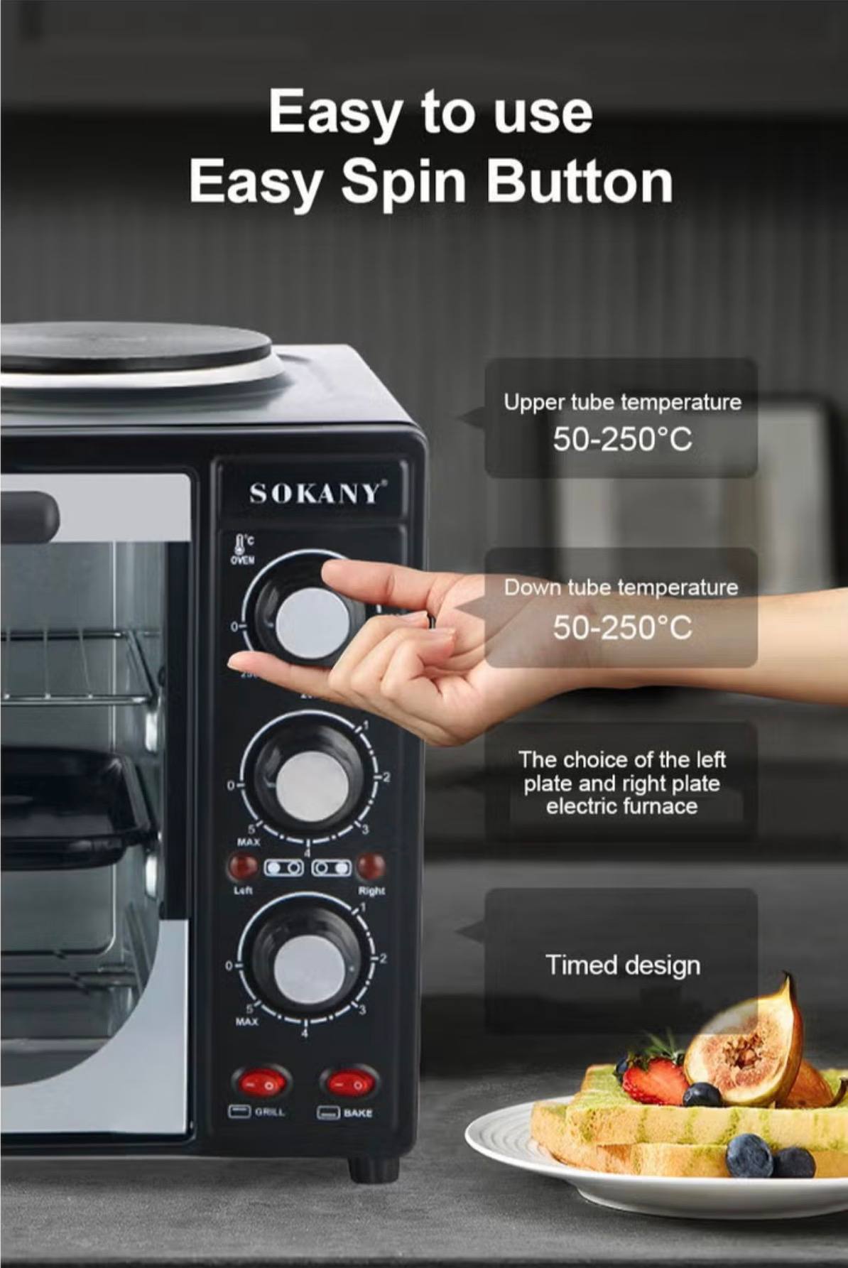 با Sokany SK-535 می‌توانید همه‌چیز را از پیتزای خانگی گرفته تا شیرینی، لازانیا، مرغ بریان یا حتی تست صبحانه آماده کنید. این دستگاه با مصرف بهینه انرژی و عملکرد قدرتمندش، هم در خانه و هم در محیط‌های کاری کوچک، عملکردی عالی دارد.