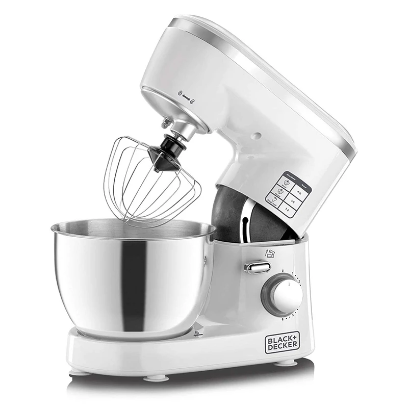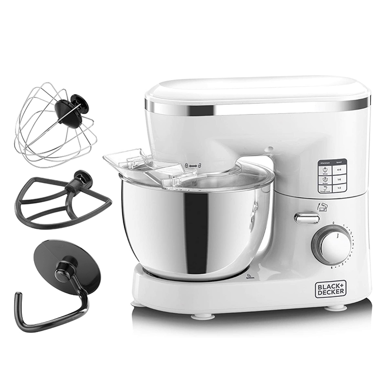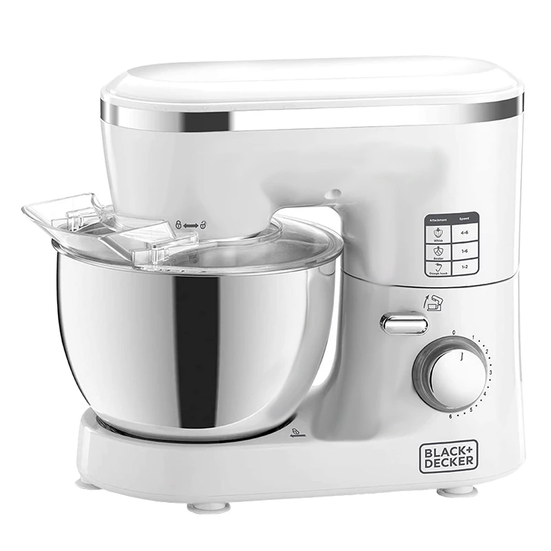 همزن کاسه دار بلک اند دکر مدل SM1000 با توان مصرفی 1000 وات و 6 سطح سرعت مختلف، دستگاهی چند منظوره برای مخلوط کردن، همزدن و ورز دادن خمیر نان، مایه کیک و شیرینی و دیگر مواد غذایی است. این همزن برقی دارای 3 پره استیل ضد زنگ خامه زن، خمیرزن، همزن و یک کاسه بزرگ استیل ضد زنگ 4 لیتری است که برای یک خانواده 4 نفره کاملا مناسب میباشد.